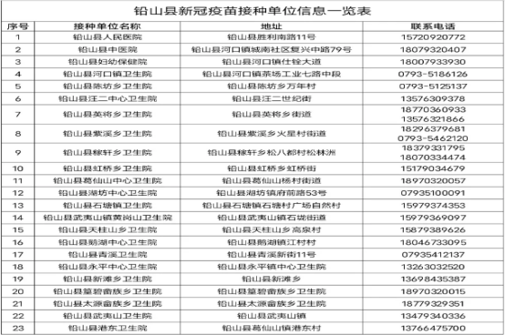 上饒市鉛山縣新冠病毒疫苗接種點信息