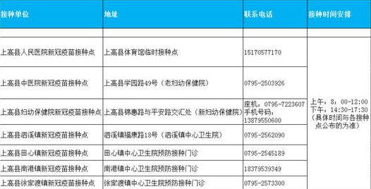 宜春市上高縣新冠病毒疫苗接種點(diǎn)信息