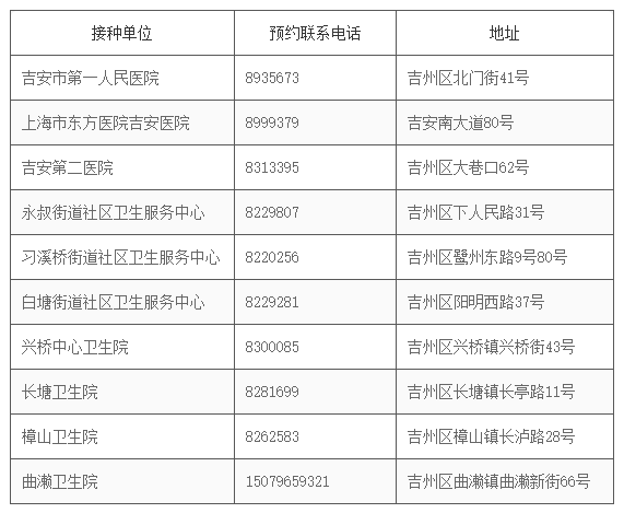 吉安市吉州區(qū)新冠病毒疫苗接種點信息