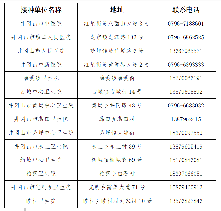 接種地點:江西省井岡山市紅星街道八面山大道3號(碧桂園旁)
