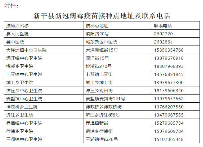 新干縣各鄉(xiāng)鎮(zhèn)街道預(yù)防接種門診聯(lián)系信息