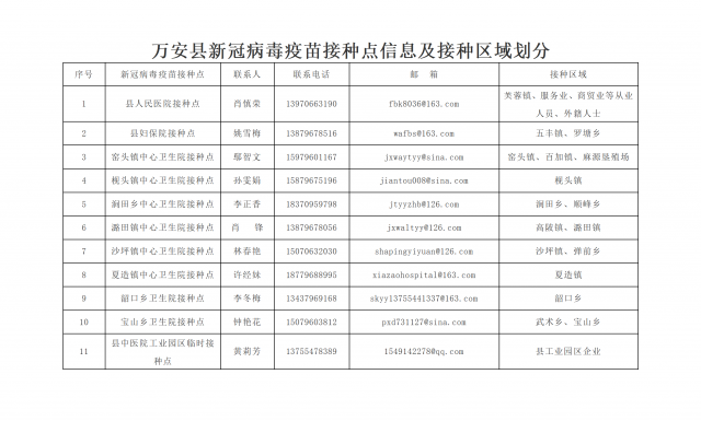 吉安市萬安縣新冠病毒疫苗接種點(diǎn)信息