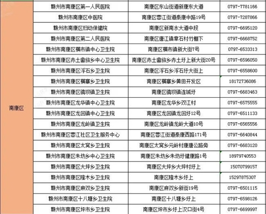 贛州市南康區(qū)新冠病毒疫苗接種點(diǎn)信息