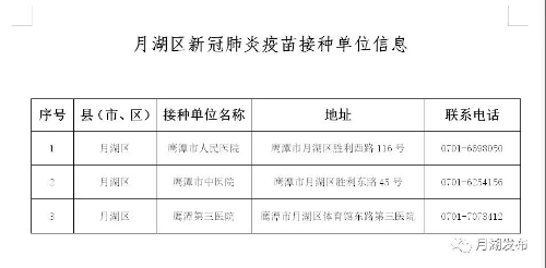 鷹潭市月湖區(qū)新冠病毒疫苗接種點(diǎn)信息