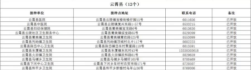 漳州市云霄縣新冠病毒疫苗接種點信息