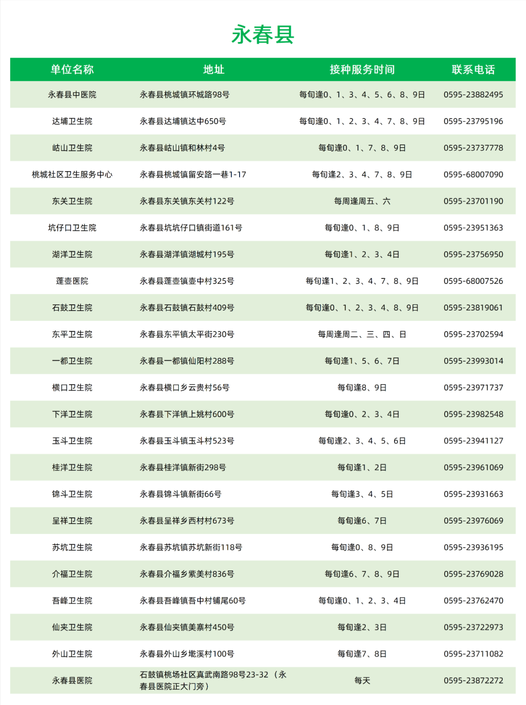21、永春縣東平衛(wèi)生院預(yù)防接種門診