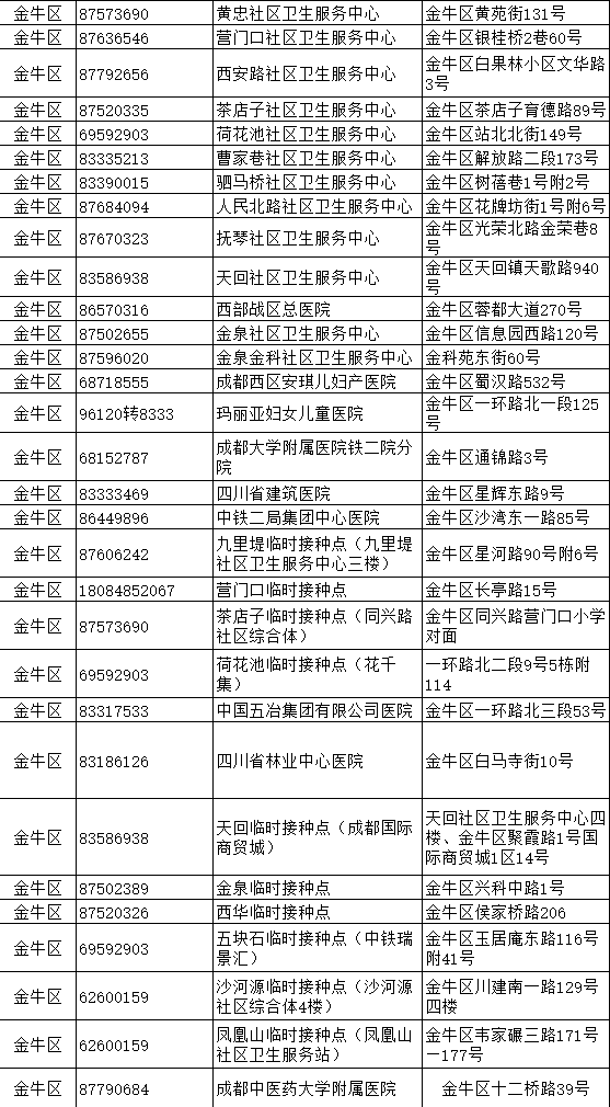 成都市金牛區(qū)新冠病毒疫苗接種點(diǎn)信息
