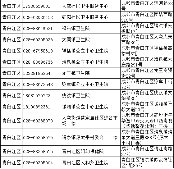 成都市青白江區(qū)新冠病毒疫苗接種點(diǎn)信息
