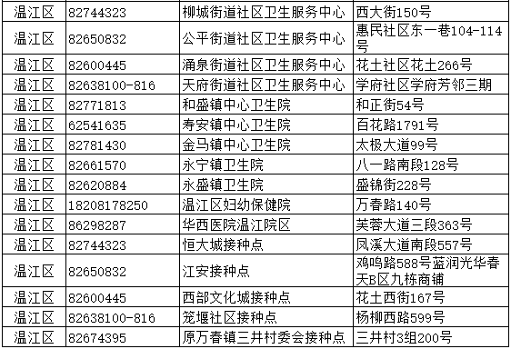 成都市溫江區(qū)新冠病毒疫苗接種點(diǎn)信息