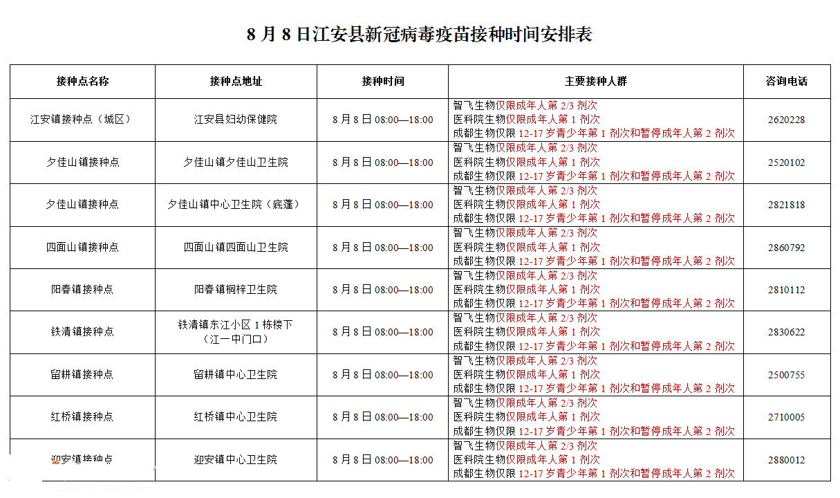 接種地點:四川省宜賓市江安縣迎安鎮(zhèn)新隆街1號