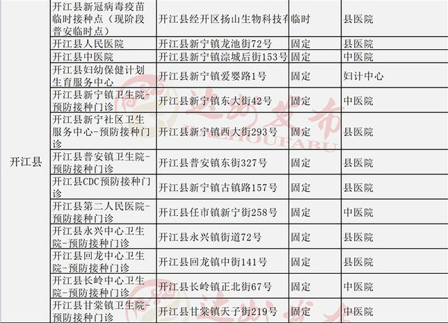 達(dá)州市開江縣新冠病毒疫苗接種點(diǎn)信息
