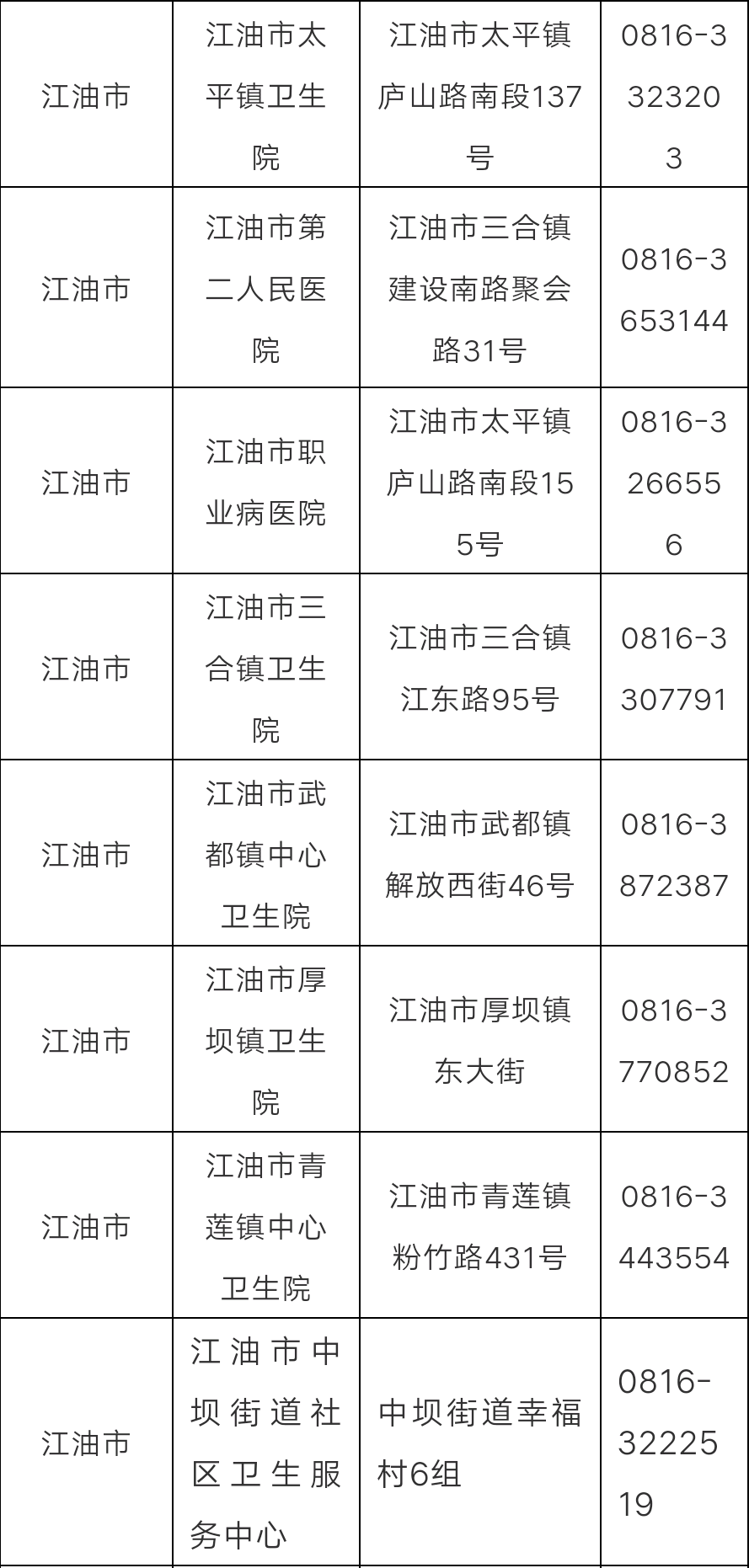 接種地點:四川省綿陽市江油市三合鎮(zhèn)江東路95號