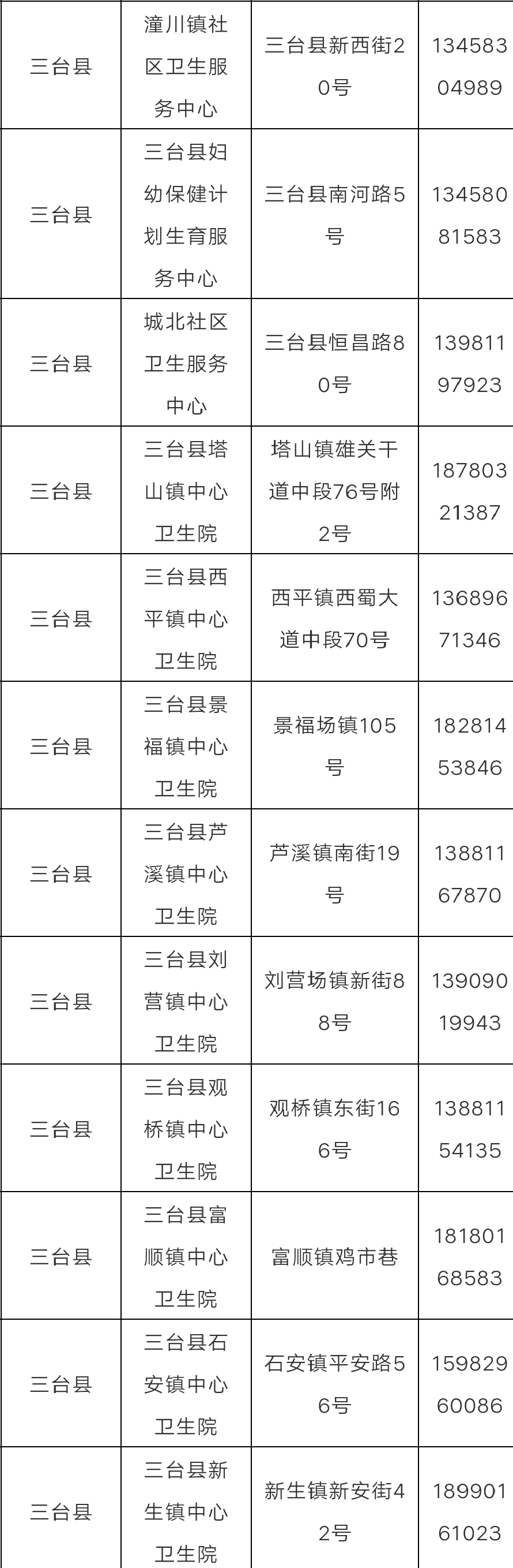 綿陽市三臺縣新冠病毒疫苗接種點(diǎn)信息