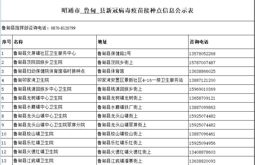 接種地點:云南省昭通市魯?shù)榭h保健路2號