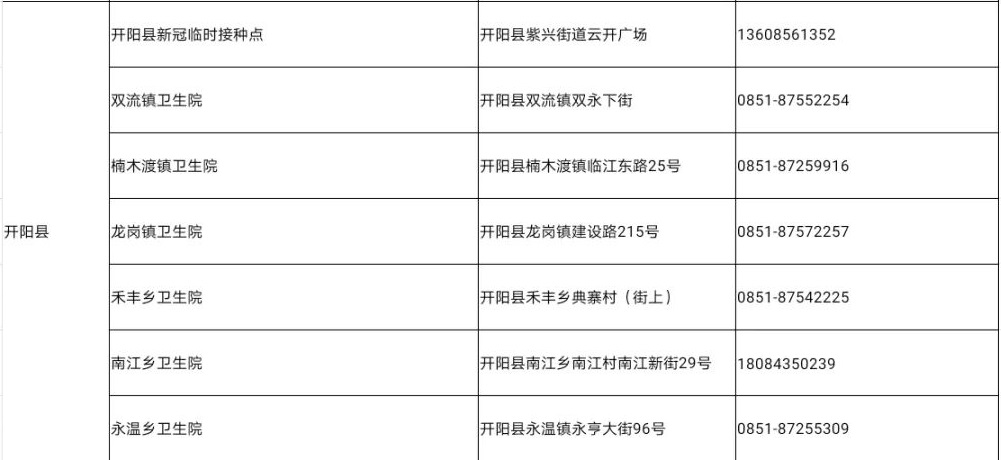 貴陽市開陽縣新冠病毒疫苗接種咨詢電話
