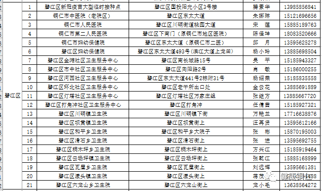 碧江轄區(qū)新冠病毒疫苗預(yù)防接種門(mén)診公示如下。