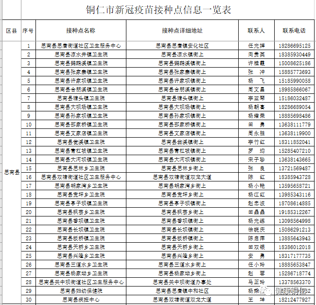即日起,銅仁市思南縣內(nèi)18歲以上居民(含60歲以上)不論戶籍,身體狀況符合接種要求的均需免費接種新冠病毒疫苗,請您與所在單位或社區(qū)聯(lián)系疫苗接種相關(guān)事宜。零散居民、流動人口也可攜帶身份證,就近自行前往接種點接種,接種點會根據(jù)疫苗供應(yīng)情況、日接種能力、排隊順序等發(fā)放接種序號。注意;接種點開放時間不定時有調(diào)整,建議先電話或者網(wǎng)上預(yù)約咨詢;銅仁市思南縣新冠病毒疫苗接種單位名單、地址、接種時間和預(yù)約電話等相關(guān)信息請看這里↓↓↓