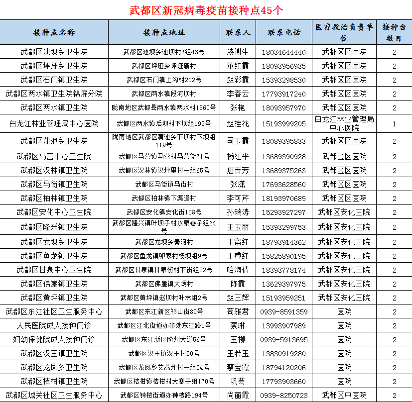 接種地點(diǎn):甘肅省隴南市武都區(qū)鐘樓路194號(hào)