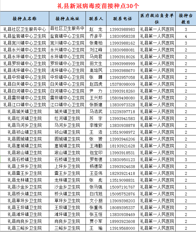 接種地點(diǎn):甘肅省隴南市禮縣雷壩鎮(zhèn)中心衛(wèi)生院
