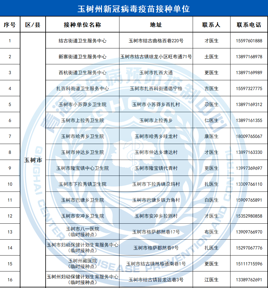 接種地點(diǎn):青海省玉樹州玉樹市格薩都然巷9號;