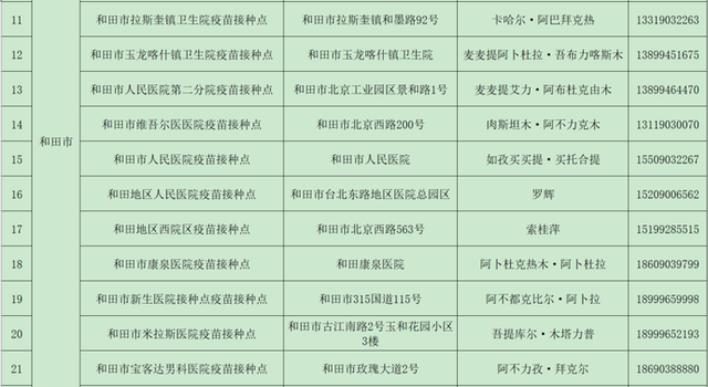 接種地點(diǎn):和田市北京西路200號,