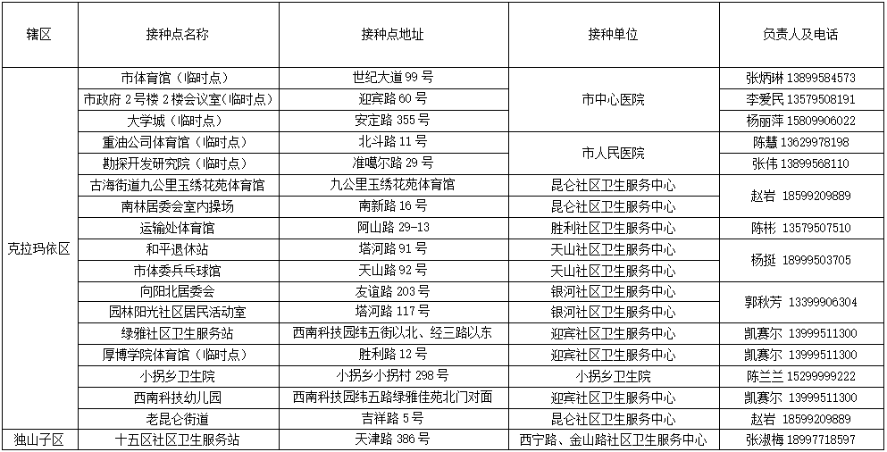 即日起,克拉瑪依市克拉瑪依區(qū)內(nèi)18歲以上居民(含60歲以上)不論戶籍,身體狀況符合接種要求的均需免費(fèi)接種新冠病毒疫苗,請(qǐng)您與所在單位或社區(qū)聯(lián)系疫苗接種相關(guān)事宜。零散居民、流動(dòng)人口也可攜帶身份證,就近自行前往接種點(diǎn)接種,接種點(diǎn)會(huì)根據(jù)疫苗供應(yīng)情況、日接種能力、排隊(duì)順序等發(fā)放接種序號(hào)。注意;接種點(diǎn)開放時(shí)間不定時(shí)有調(diào)整,建議先電話或者網(wǎng)上預(yù)約咨詢,克拉瑪依市疫情防控工作領(lǐng)導(dǎo)小組(指揮部)咨詢電話:0990-6220530,6220580;克拉瑪依市克拉瑪依區(qū)疾控中心新冠疫情防控服務(wù)電話:0990-6240240;克拉瑪依區(qū)新冠病毒疫苗接種單位名單、地址、接種時(shí)間和預(yù)約電話等相關(guān)信息請(qǐng)看這里↓↓↓