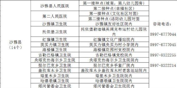 沙雅縣新冠病毒疫苗接種咨詢電話