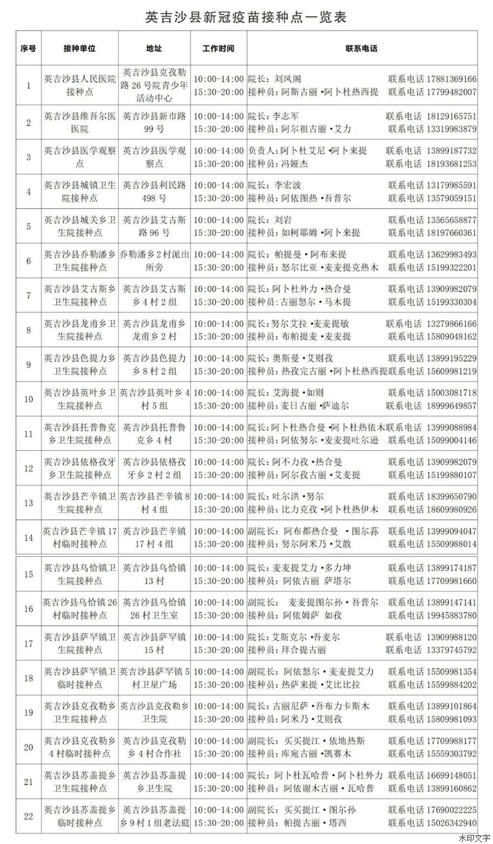 接種地點(diǎn):新疆維吾爾族自治區(qū)喀什地區(qū)英吉沙縣克孜勒路26號;