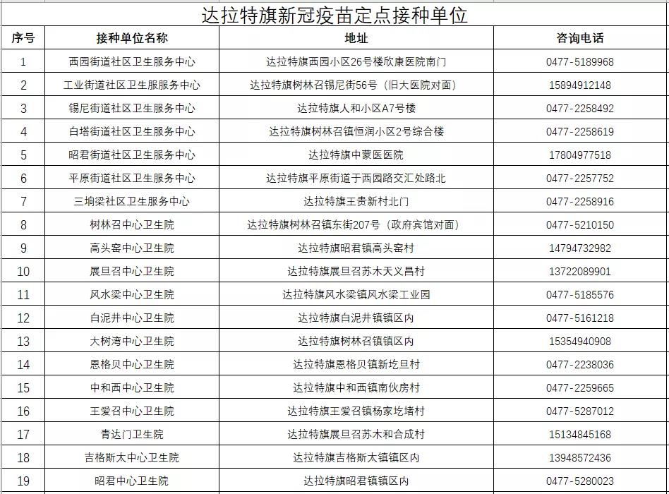 接種地點:內(nèi)蒙古鄂爾多斯市達拉特旗樹林召錫尼街56號