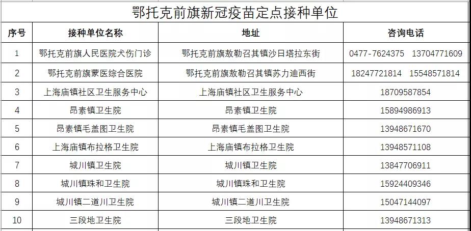 鄂爾多斯市鄂托克前旗新冠病毒疫苗接種咨詢電話