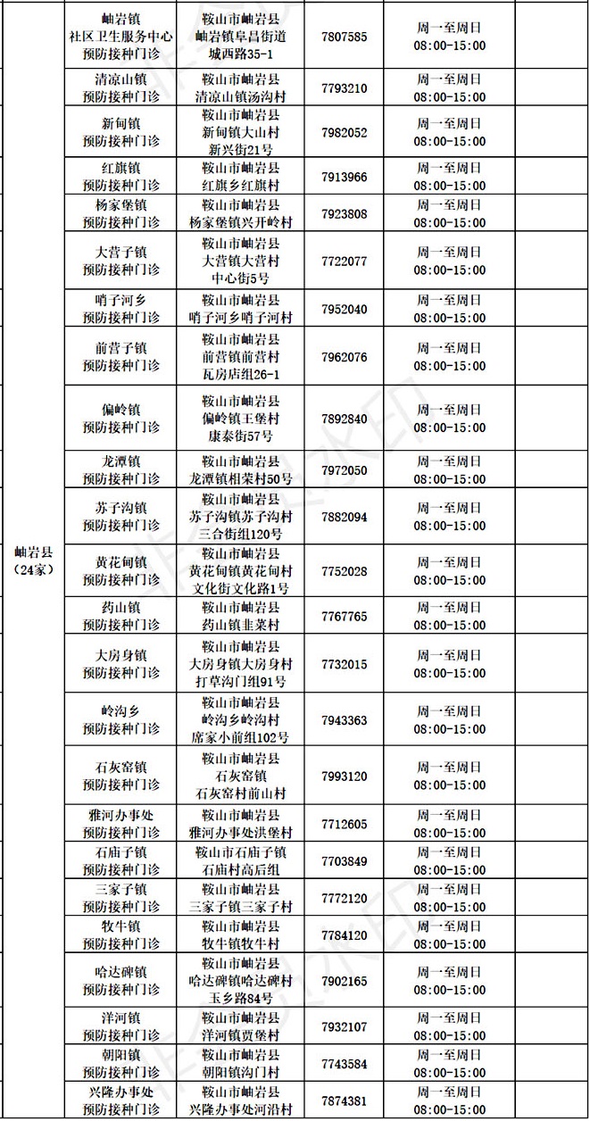 接種地點:遼寧省鞍山市岫巖縣岫巖鎮(zhèn)阜昌街道城西路35-1