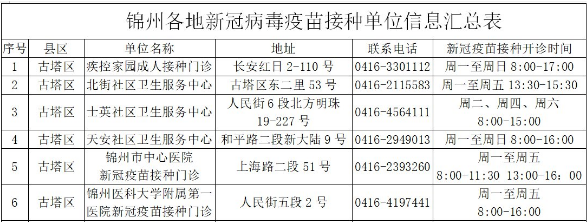 接種地點:遼寧省錦州市古塔區(qū)長安紅日2-110號;