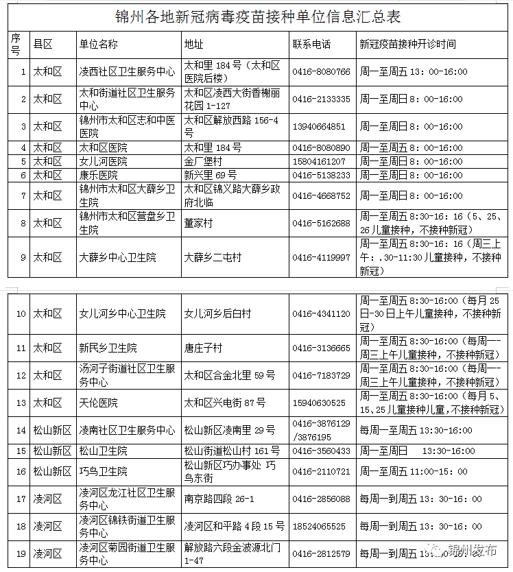 接種地點:遼寧省錦州市太和區(qū)太和里184號;