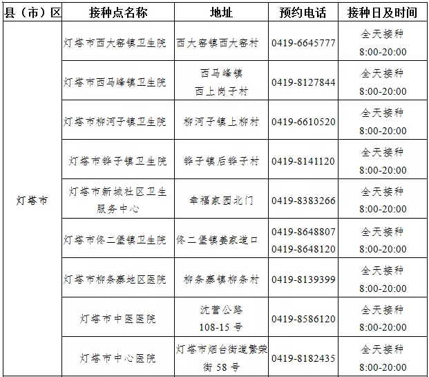 接種地點(diǎn):遼寧省遼陽市燈塔市煙臺(tái)街道繁榮街58號(hào)