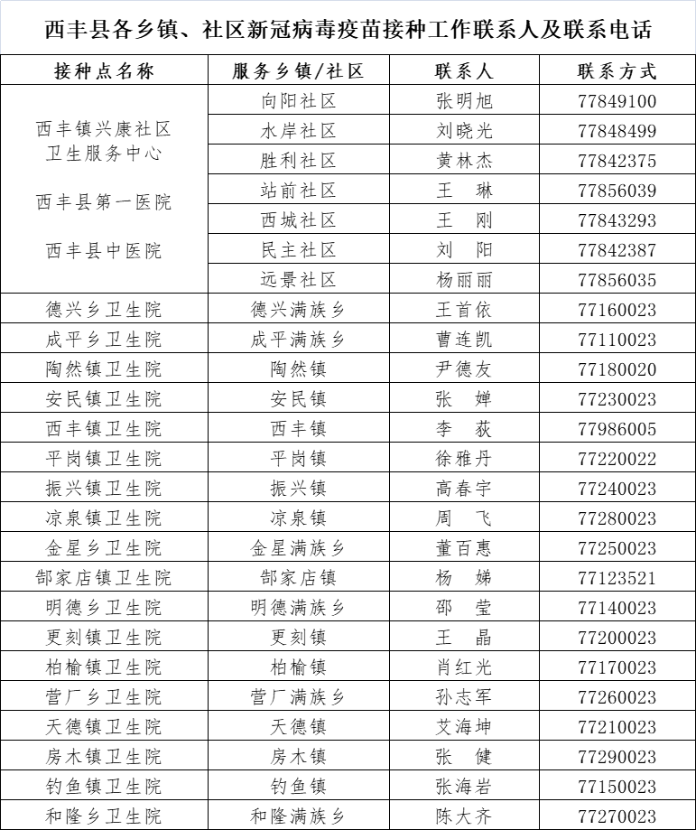 即日起,鐵嶺市西豐縣內(nèi)18歲以上居民(含60歲以上)不論戶籍,身體狀況符合接種要求的均需免費(fèi)接種新冠病毒疫苗,請您與所在單位或社區(qū)聯(lián)系疫苗接種相關(guān)事宜。零散居民、流動人口也可攜帶身份證,就近自行前往接種點(diǎn)接種,接種點(diǎn)會根據(jù)疫苗供應(yīng)情況、日接種能力、排隊(duì)順序等發(fā)放接種序號。注意;接種點(diǎn)開放時間不定時有調(diào)整,建議先電話或者網(wǎng)上預(yù)約咨詢,鐵嶺市新冠疫情防控咨詢電話:024-74230306,西豐縣新冠病毒疫情防控?zé)峋€電話:024-77856238;鐵嶺市西豐縣新冠病毒疫苗接種單位名單、地址、接種時間和預(yù)約電話等相關(guān)信息請看這里↓↓↓