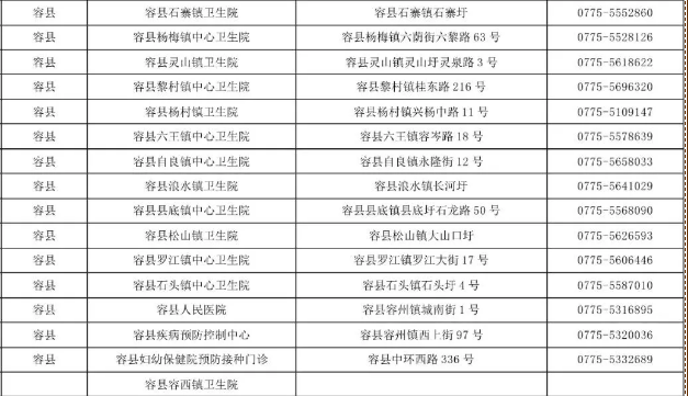 接種地點:廣西壯族自治區(qū)玉林市容縣中環(huán)西路336號,