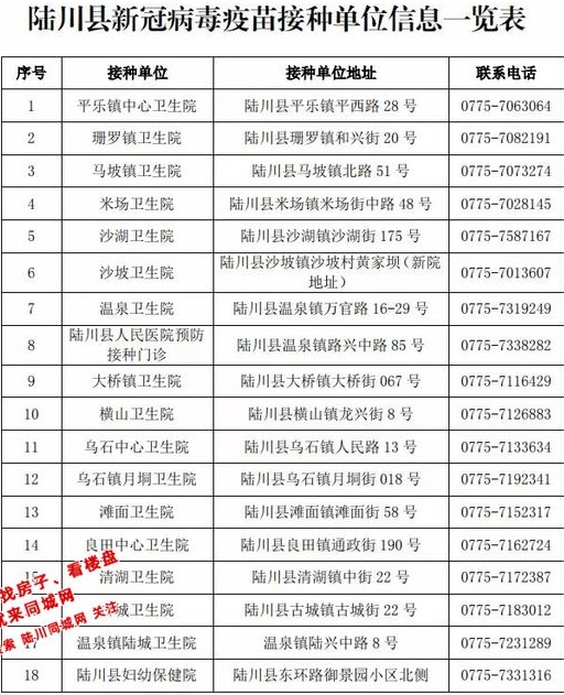 接種地點(diǎn):廣西壯族自治區(qū)玉林市陸川縣沙坡鎮(zhèn)沙坡村黃家壩(新院 地址)