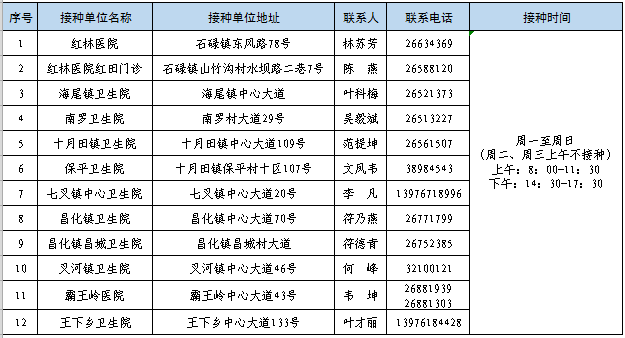 接種地點(diǎn):海南省昌江縣十月田鎮(zhèn)中心大道109號(hào)