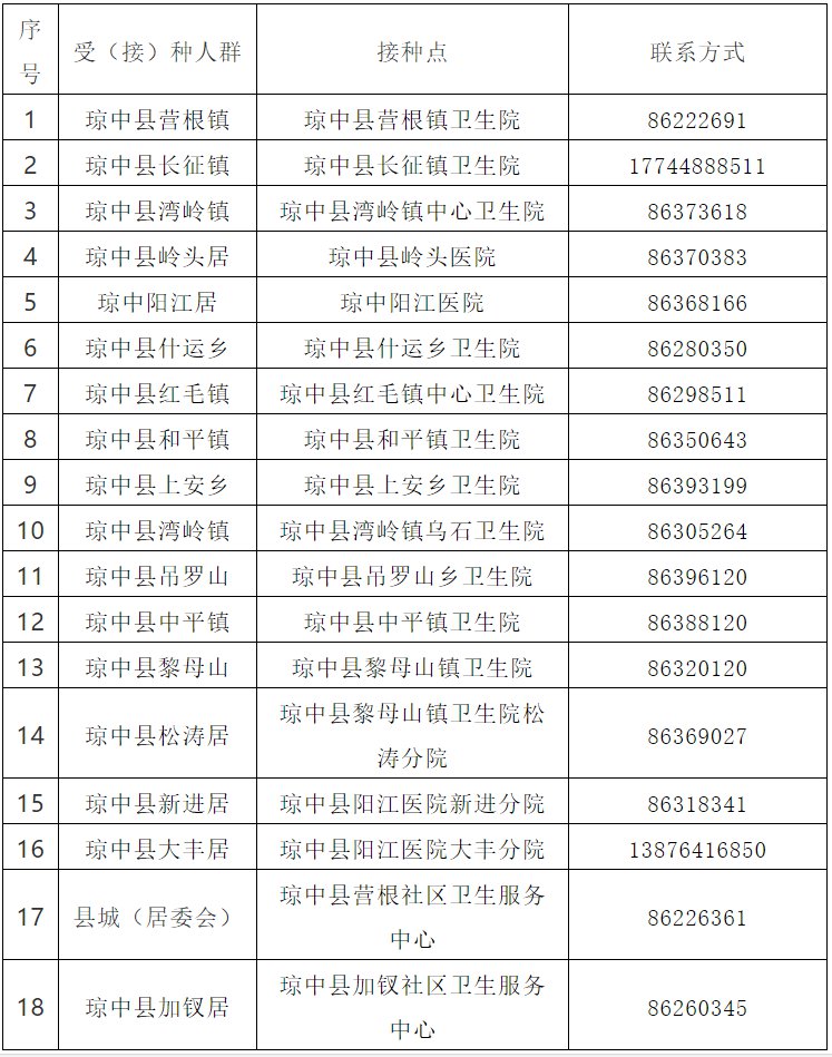 接種地點(diǎn):海南省瓊中縣營根鎮(zhèn)海榆路630號(hào)