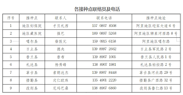 接種地點(diǎn):西藏自治區(qū)阿里地區(qū)迎賓大道6號(hào);