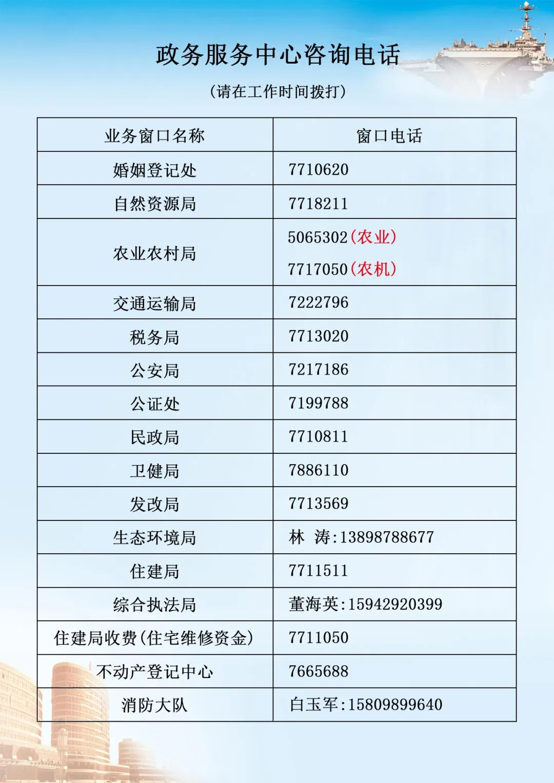 建昌縣公共行政服務(wù)中心辦事大廳窗口咨詢電話