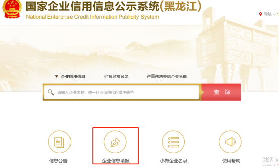 第一步,登陸網(wǎng)站主頁(yè)。打開(kāi)瀏覽器輸入國(guó)家企業(yè)信用信息公示系統(tǒng)(黑龍江)網(wǎng)址,進(jìn)入網(wǎng)站主頁(yè)面。