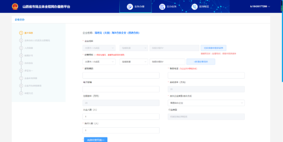 進入設(shè)立環(huán)節(jié)后,我們第一步是需要完成基本信息的錄入,申請人要逐個完善相應(yīng)的內(nèi)容,如圖所示。