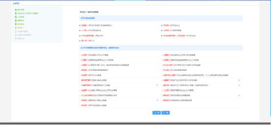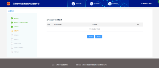 前置許可也是在設(shè)立環(huán)節(jié)的一項,此處填寫前置許可經(jīng)營事項,包含許可機關(guān)名稱、許可機關(guān)。當(dāng)企業(yè)經(jīng)營范圍不涉及前置許可,用戶不填寫此項,可直接點擊“下一步”即可。