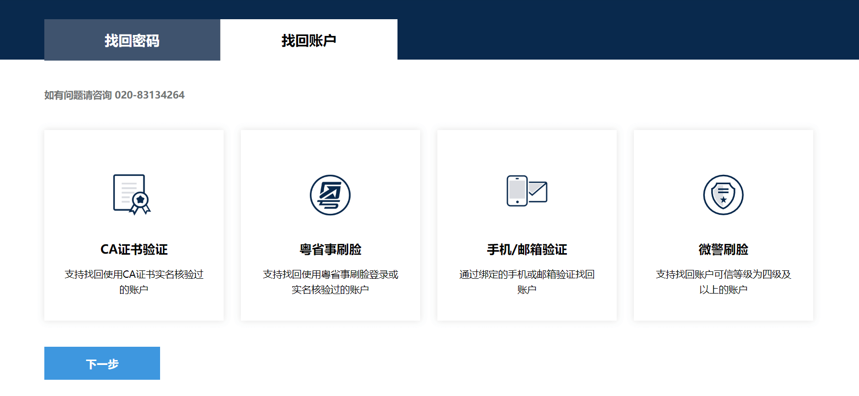 選擇“粵省事刷臉”,點(diǎn)擊“下一步”。