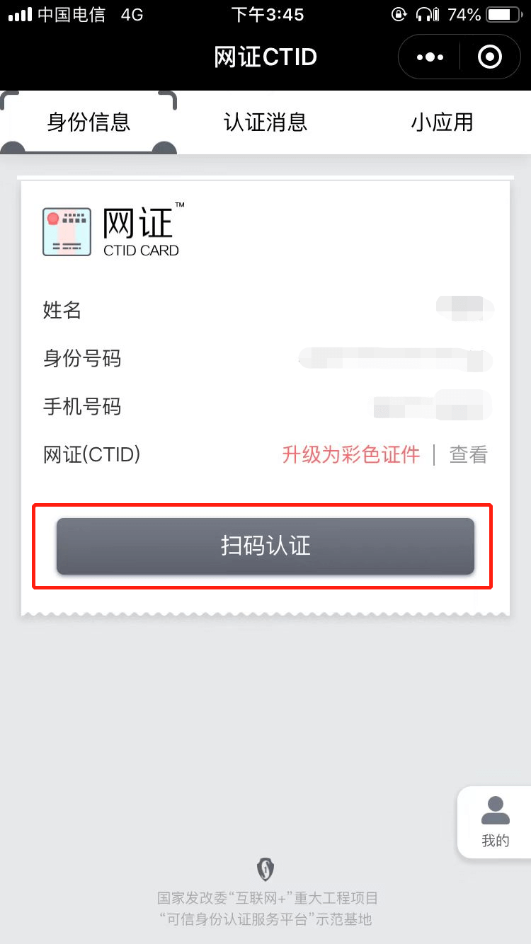 然后使用微信掃描頁(yè)面的小程序碼完成身份核驗(yàn)。