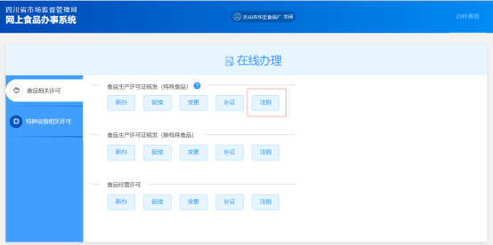 (1) 食品生產(chǎn)許可證核發(fā)(特殊食品)注銷申請由“申請”頁面的“注銷”按鈕發(fā)起;
