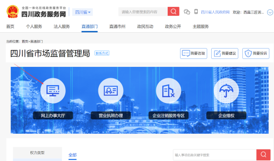 (3)點(diǎn)擊【直通部門(mén)】后,點(diǎn)擊【省市場(chǎng)監(jiān)管局】