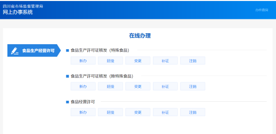 (6)系統(tǒng)提供辦理的業(yè)務(wù)如下:食品生產(chǎn)許可證核發(fā)(特殊食品)、食品生產(chǎn)許可證核發(fā)(除特殊食品)、食品經(jīng)營(yíng)許可申請(qǐng)。