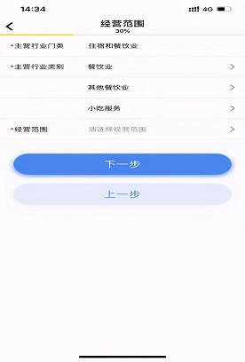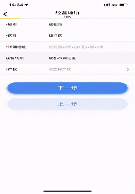 4、經(jīng)營(yíng)場(chǎng)所、經(jīng)營(yíng)范圍填寫(xiě)。進(jìn)一步將詳細(xì)街道地址與產(chǎn)權(quán)情況完善后,點(diǎn)擊進(jìn)入經(jīng)營(yíng)范圍選擇。詳細(xì)地址填寫(xiě)應(yīng)保持與住所證明材料(如房產(chǎn)證、購(gòu)房合同等)所記載地址一致。經(jīng)營(yíng)范圍主營(yíng)行業(yè)門類由第一步所選行業(yè)確定,若第一步選擇為“無(wú)字號(hào)”,則需要在主營(yíng)行業(yè)門類下拉菜單中進(jìn)行選擇,確定主營(yíng)行業(yè)類別,完善經(jīng)營(yíng)范圍后,點(diǎn)擊進(jìn)入下一步,如下圖: